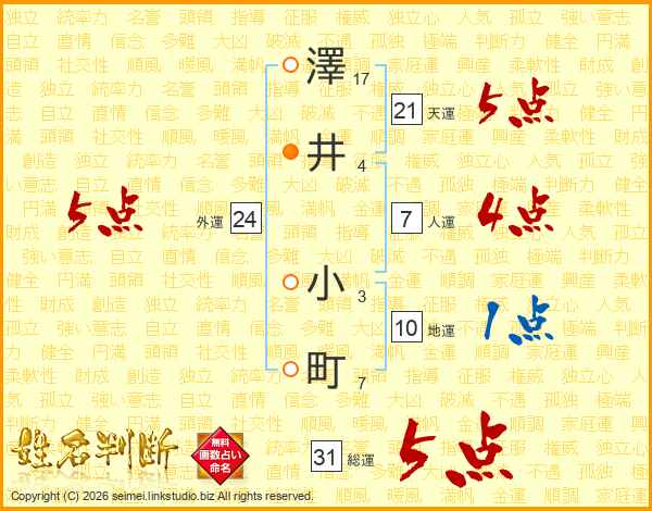 澤(17画)井(4画) 小(3画)町(7画)