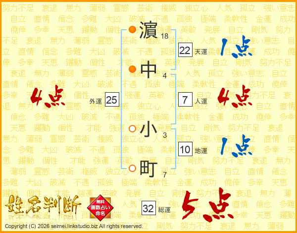 濵中小町さんの総運は32画の5点!