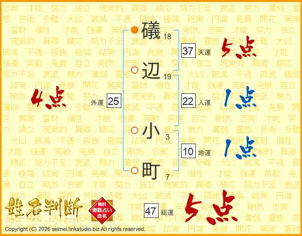 礒辺小町さんの総運は47画の5点!