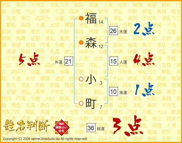 福森小町さんの外運は21画の5点!