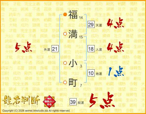 福満小町さんの総運は39画の5点!