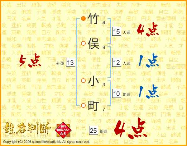 竹俣小町さんの総運は25画の4点!