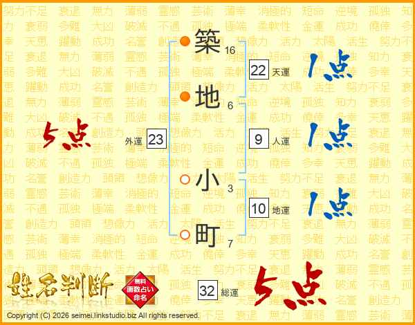 築地小町さんの総運は32画の5点!