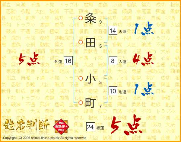 粂田小町さんの総運は24画の5点!
