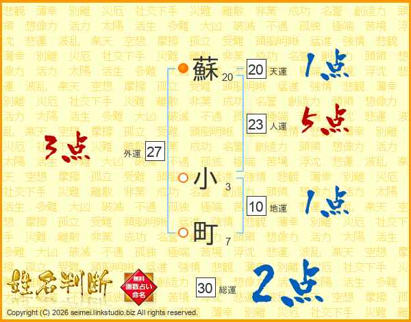 蘇小町さんの総運は30画の2点!
