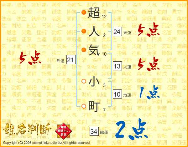 超人気小町さんの総運は34画の2点!