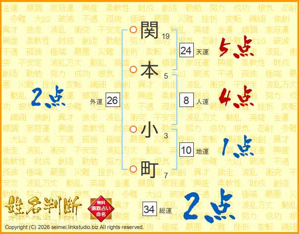 関本小町さんの総運は34画の2点!