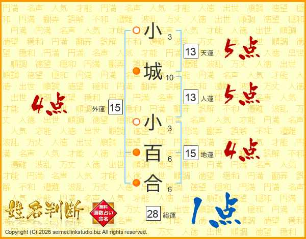 小城小百合さんの総運は28画の1点!
