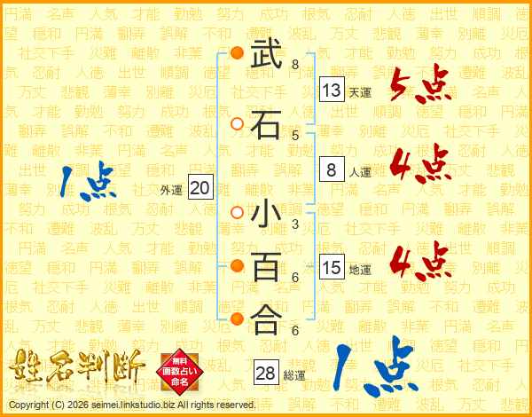 武石小百合さんの総運は28画の1点!
