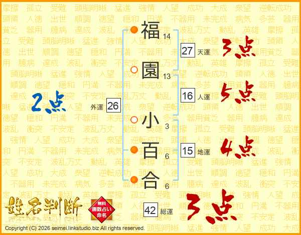 福園小百合さんの総運は42画の3点!