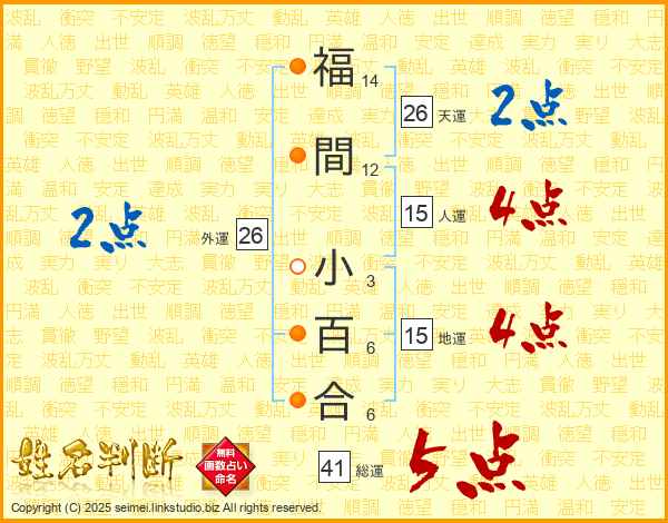 福(14画)間(12画) 小(3画)百(6画)合(6画)