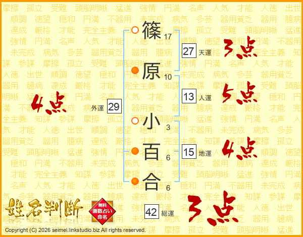 篠(17画)原(10画) 小(3画)百(6画)合(6画)