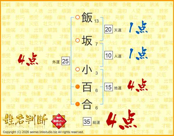 飯(13画)坂(7画) 小(3画)百(6画)合(6画)