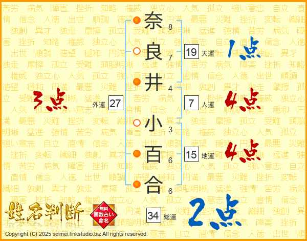 奈(8画)良(7画)井(4画) 小(3画)百(6画)合(6画)
