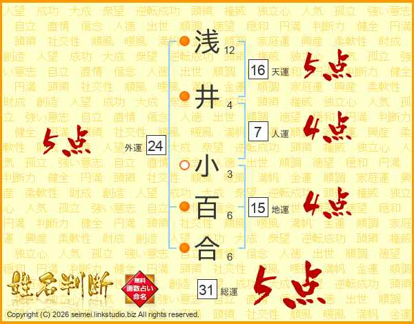 浅(12画)井(4画) 小(3画)百(6画)合(6画)