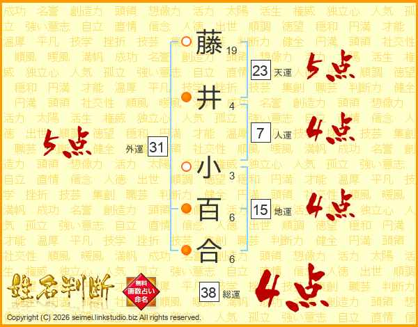 藤井小百合さんの総運は38画の4点!