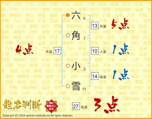 六角小雪さんの外運は17画の4点!