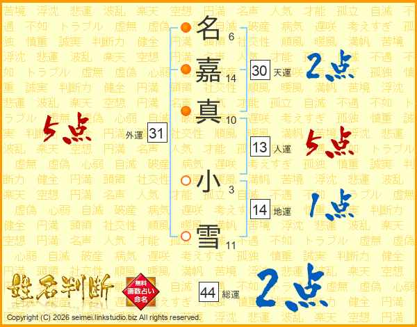 名嘉真小雪さんの天運は30画の2点!