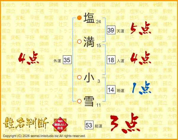 塩満小雪さんの天運は39画の5点!