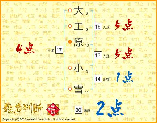 大工原小雪さんの総運は30画の2点!