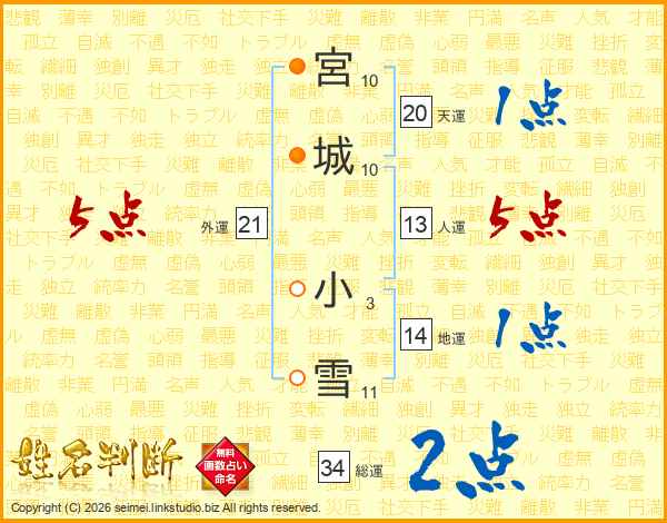 宮城小雪さんの外運は21画の5点!