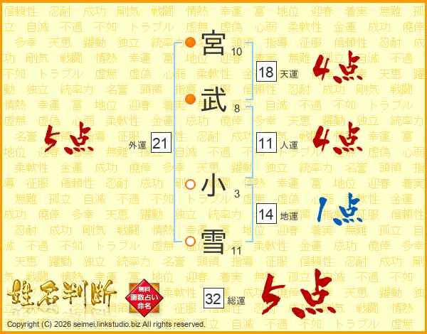 宮武小雪さんの総運は32画の5点!
