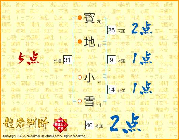 寳地小雪さんの総運は40画の2点!