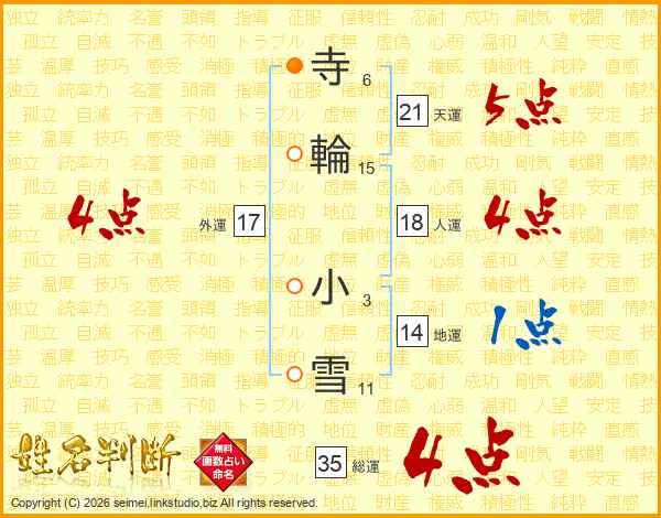 寺輪小雪さんの外運は17画の4点!