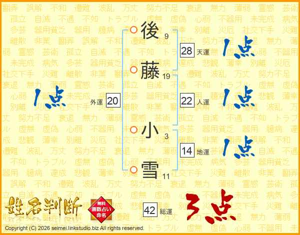 後藤小雪さんの総運は42画の3点!