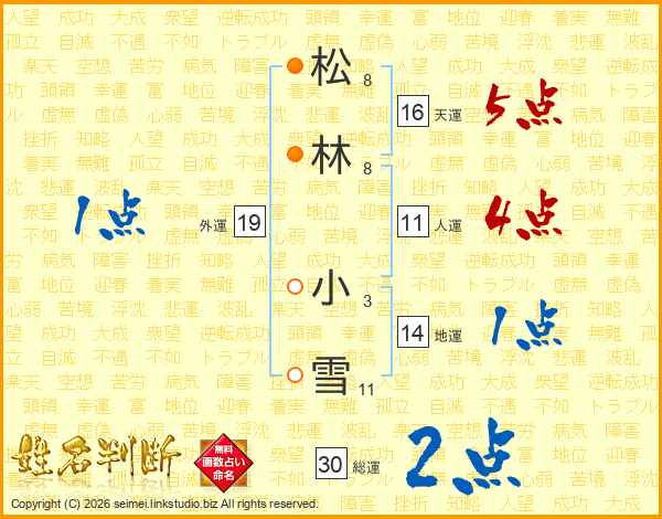 松林小雪さんの総運は30画の2点!
