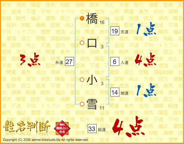 橋口小雪さんの総運は33画の4点!