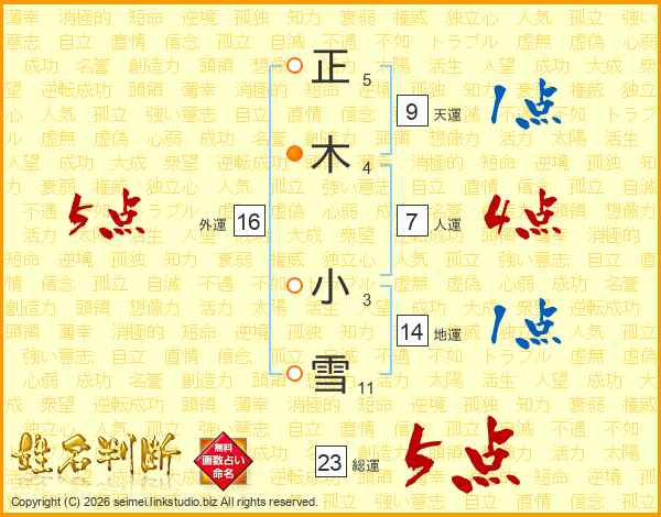 正木小雪さんの総運は23画の5点!