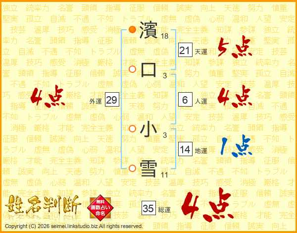 濱口小雪さんの総運は35画の4点!