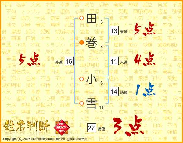 田巻小雪さんの総運は27画の3点!