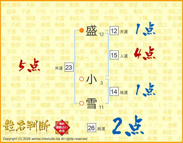 盛小雪さんの総運は26画の2点!