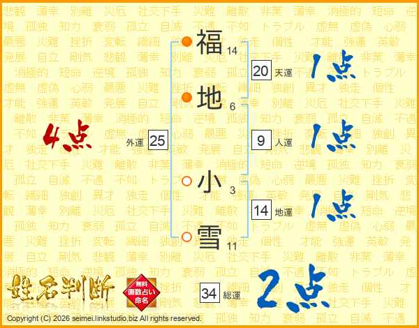 福地小雪さんの総運は34画の2点!