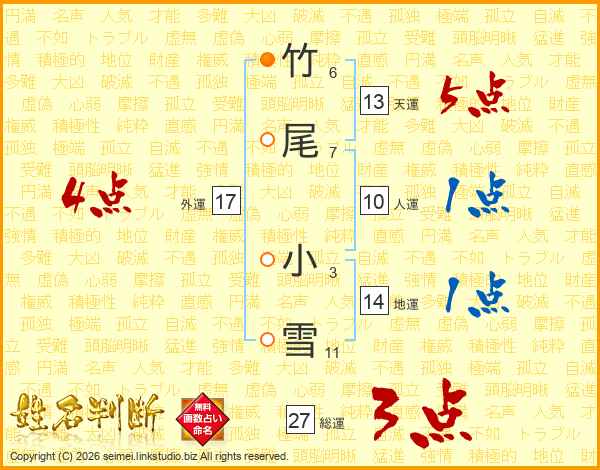 竹尾小雪さんの総運は27画の3点!