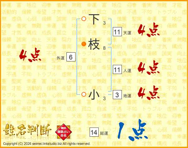 下枝小さんの総運は14画の1点!