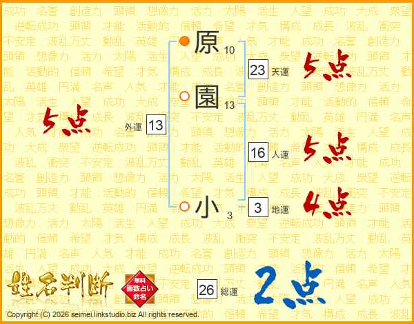 原園小さんの総運は26画の2点!