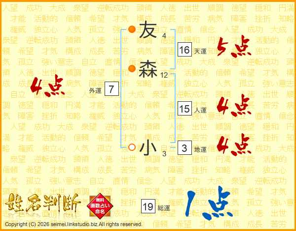 友森小さんの外運は7画の4点!