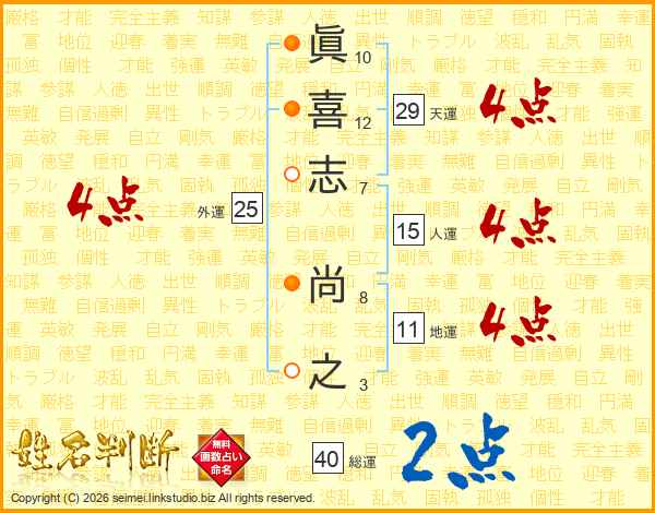 眞喜志尚之さんの天運は29画の4点!