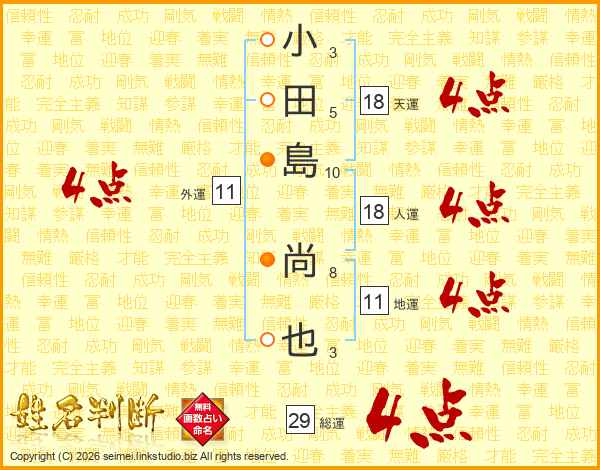 小(3画)田(5画)島(10画) 尚(8画)也(3画)