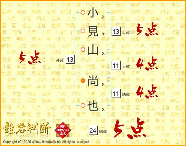 小見山尚也さんの天運は13画の5点!