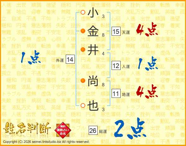 小(3画)金(8画)井(4画) 尚(8画)也(3画)