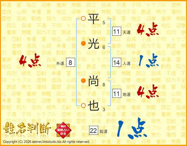 平光尚也さんの地運は11画の4点!