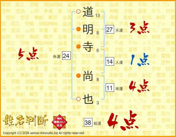道明寺尚也さんの総運は38画の4点!