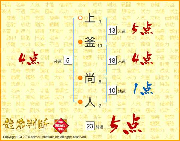 上釜尚人さんの総運は23画の5点!