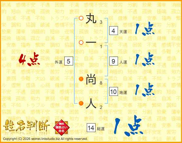 丸一尚人さんの総運は14画の1点!