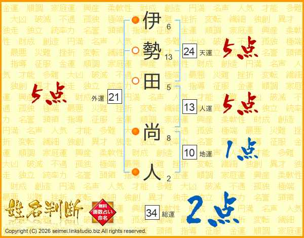 伊勢田尚人さんの総運は34画の2点!