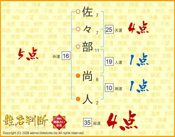 佐々部尚人さんの総運は35画の4点!